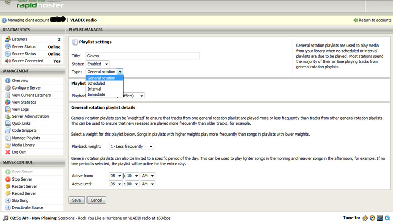CentovaCast screenshot